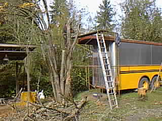 November 12th. It might look like a big chain saw-weilding squirrel in that tree, but it's actually Michael, helping take out a dead maple tree that was hanging over the bus, making me nervous about the coming winter winds and ice. |