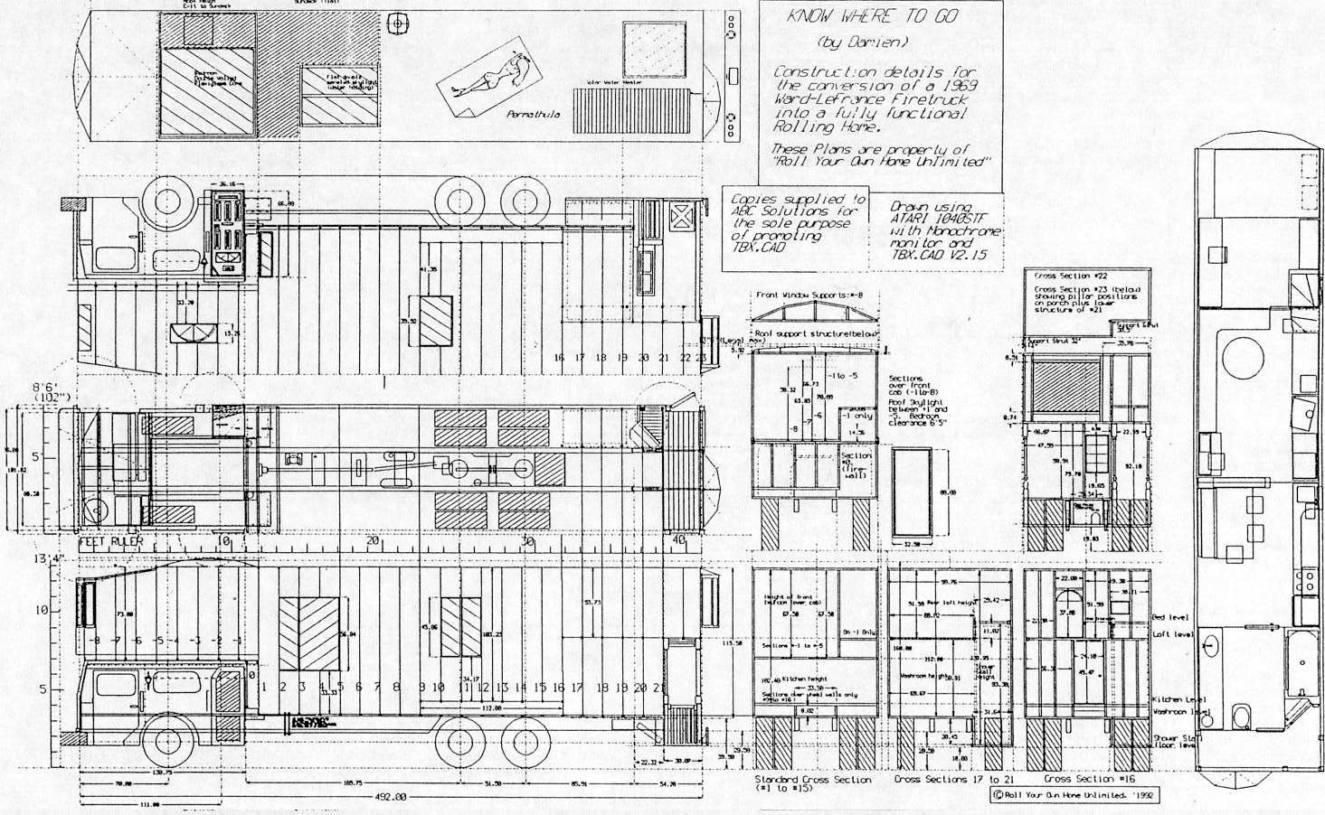 OK, now here's something that I wanted to present full-sized, but it's too big to put on a page, so click the image below to be taken to a large CAD drawing (composed on an Atari computer!) of the fire truck: